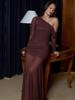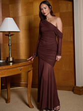 Oblique Shoulder Long Sleeve Maxi Dress For Women Mesh Backless Bodycon Ruched Club Evening Long Dress