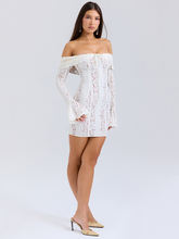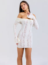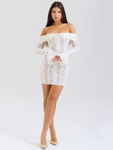 Off-shoulder Lace Mini Dress For Women White Strapless Long Sleeve Backless Bodycon Club Party Dress Elegant