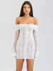Off-shoulder Lace Mini Dress For Women White Strapless Long Sleeve Backless Bodycon Club Party Dress Elegant