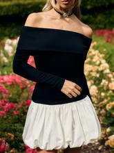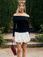 Off-shoulder Long Sleeve Mini Dress For Women Contrast Color Patchwork Strapless Backless A-line Dress