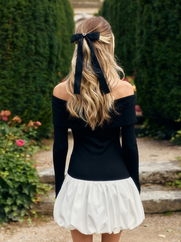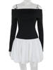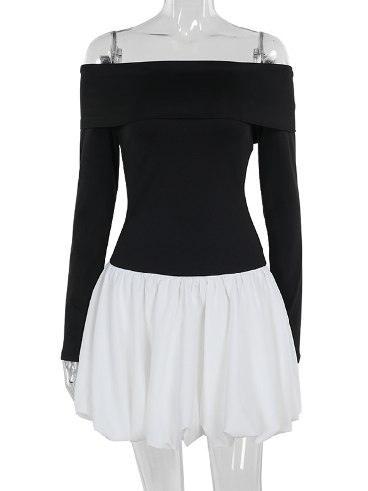 Off-shoulder Long Sleeve Mini Dress For Women Contrast Color Patchwork Strapless Backless A-line Dress