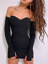 Off-shoulder Long Sleeve Mini Dress For Women Robe Ribbed Strapless Bodycon Fall High Waist Dress Elegant