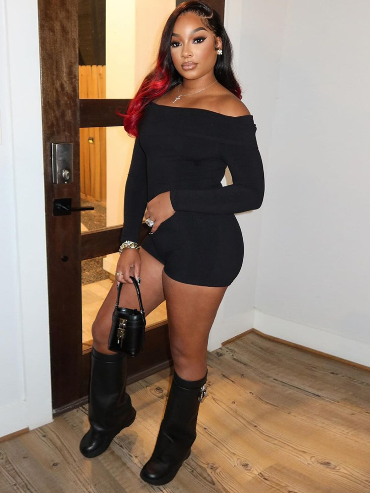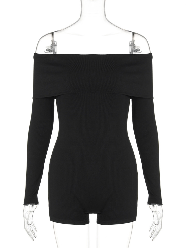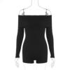 Off-shoulder Long Sleeve Playsuits Women Rompers Autumn Black Ribbed Strapless Backless Skinny Playsuits