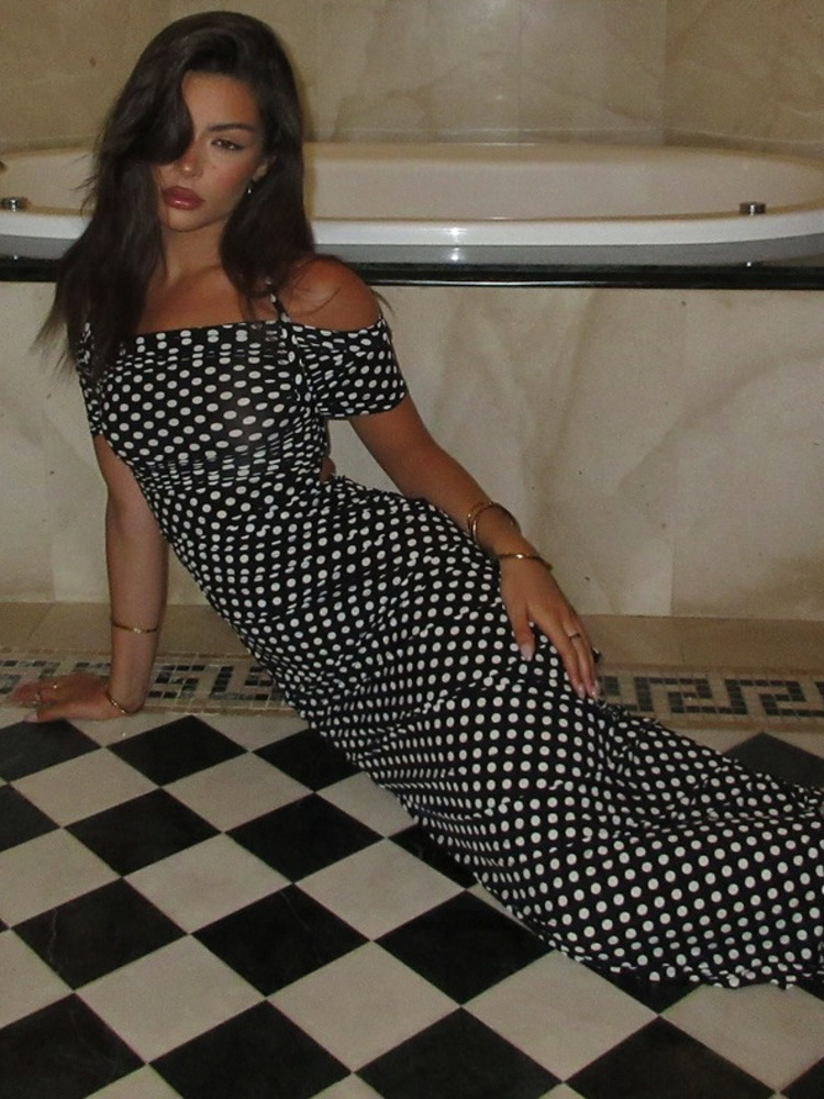 Off-shoulder Polka Dot Maxi Dress For Women Gown Halter Sleeveless Backless bodycon Split Long Dress Elegant