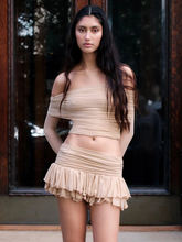 Off-shoulder Skirt Two Pieces Sets For Women Sleeveless Slim Fit Crop Top And Short Skirt Female Two Pieces Sets