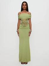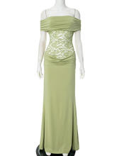 Off-shoulder Strapless Maxi Dress For Women Green Lace Sheer Sleeveless Backless Bodycon Club Party Long Dress
