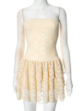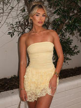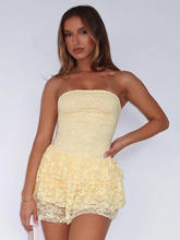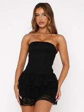 Off-shoulder Strapless Mini Dress For Women Elegant Lace Sleeveless Backless High Waist Pleated Cake Dress