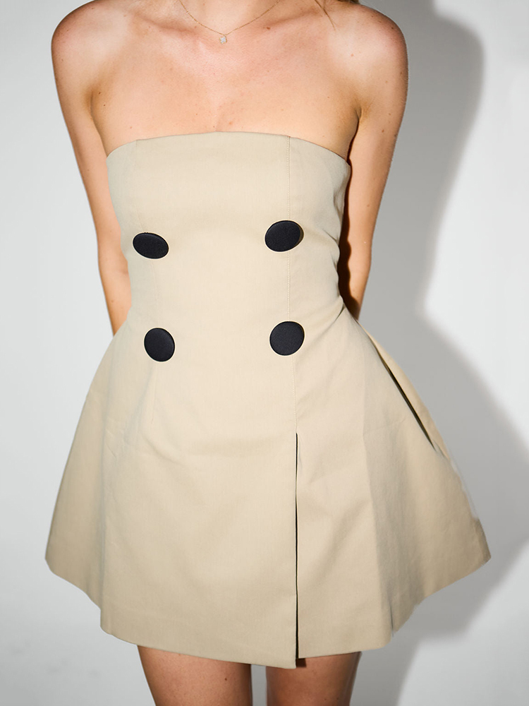 Off-shoulder Strapless Mini Dress For Women Khaki High Waist Backless Sleeveless Club Party Dress Elegant