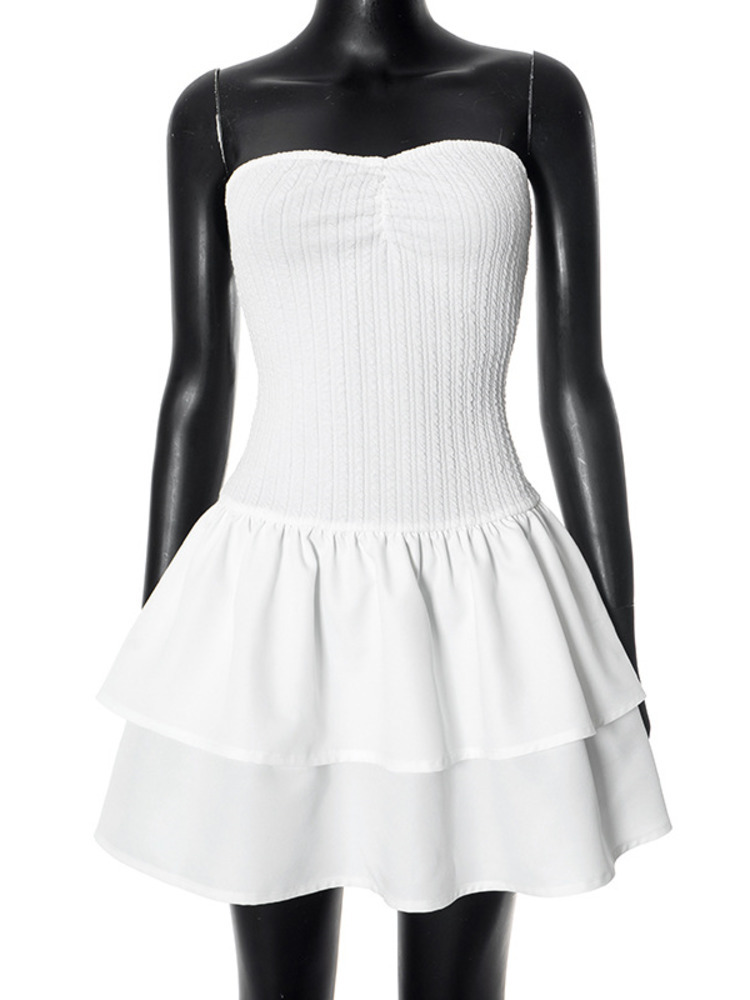Off-shoulder Strapless Mini Dress For Women White Spaghetti Strap Sleeveless High Waist A-line Cake Dress Vestido