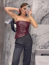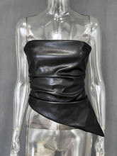 Off-shoulder Strapless PU Leather Tops Women Zipper Backless Sleeveless Ruched Irregular Club Crop Tops
