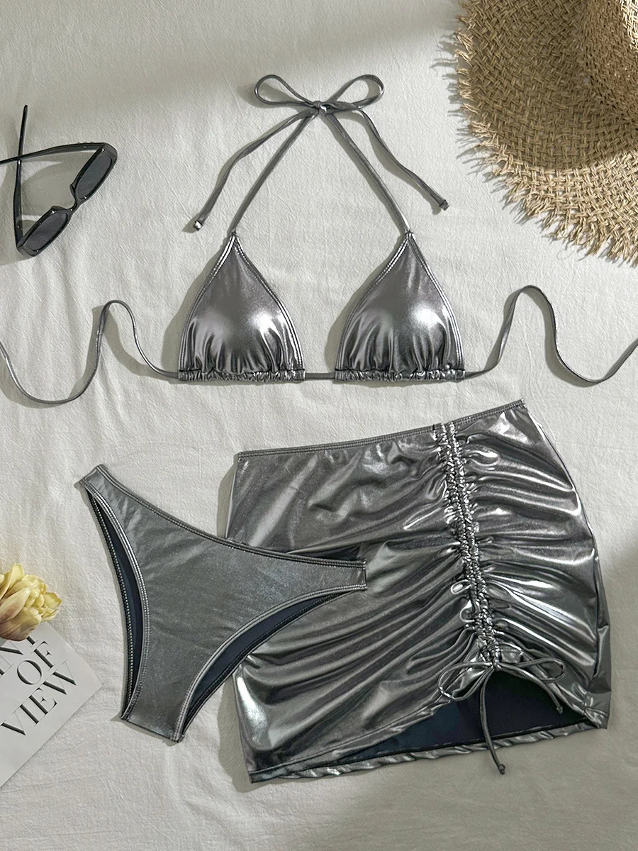 One Shoulder Bikinis 2025 Women Cut Out String Swimsuit Solid Swimwear Female Bathers Bathing Swimming Swim Suit Beachwear