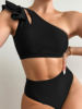 One Shoulder Bikinis 2025 Women Ruffle Swimsuit Solid High Waist Swimwear Female Padded Bathers Bathing Swimming Suit Beachwear