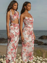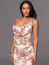 One Shoulder Print Midi Dress For Women Off-shoulder Backless Sleeveless Bodycon Club Party Long Dress