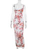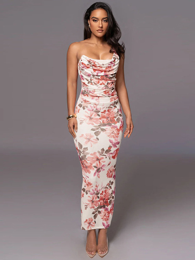 One Shoulder Print Midi Dress For Women Off-shoulder Backless Sleeveless Bodycon Club Party Long Dress