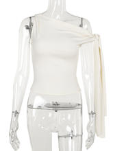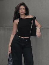 One Shoulder Skew Collar T-shirt Women Summer Sleeveless Backless Crop Tops Femme Tee Shirt 2024