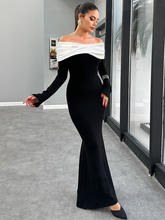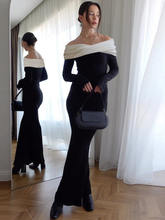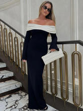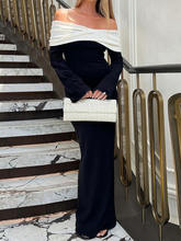 Patchwork Off-shoulder Maxi Dress For Women Strapless Long Sleeve Backless Bodycon Club Party Dress