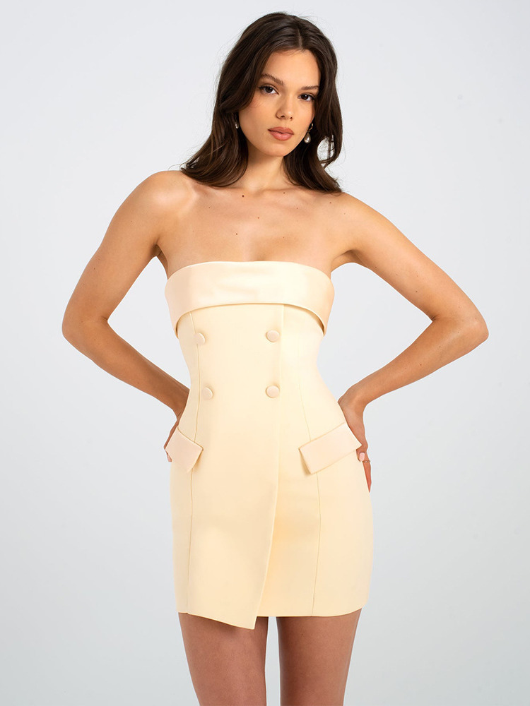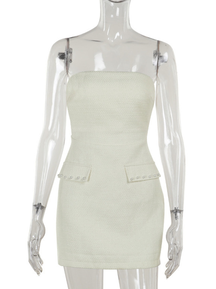 Pearl Dress Sets Women Autumn Long Sleeve Coat And Mini Dress Two Piece Sets Femme Strapless Dress Matching Sets