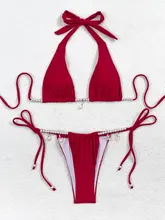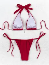 Pearls Halter High Cut Strappy Bikini Women Swimwear Female Swimsuit Two-pieces Bikini Set Bather Bathing Suit Swim Beachwear