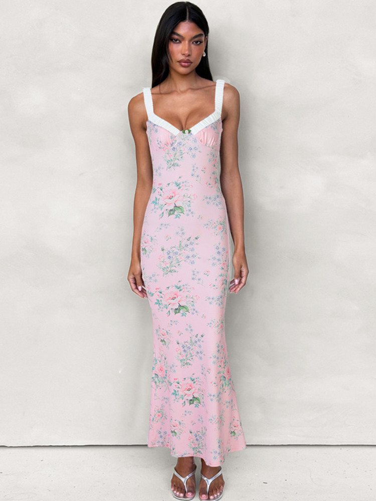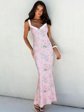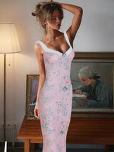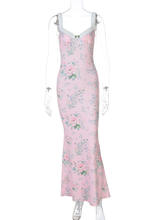 Pink Print Backless Maxi Dress For Women Gown Patchwork Spaghetti Strap Sleeveless Bodycon Club Long Dress
