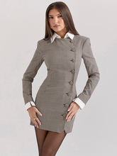 Plaid Long Sleeve Mini Dress For Women Elegant Single-breasted Shirt Collar High Waist Bodycon Club Dress Vestido
