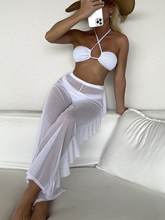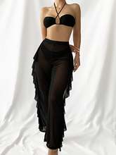 Plain Criss Cross Halter Bikini Set With Ruffle Pants Bandeau Swimsuit Women 2025 White Swimwear Female Bathing Suit Black
