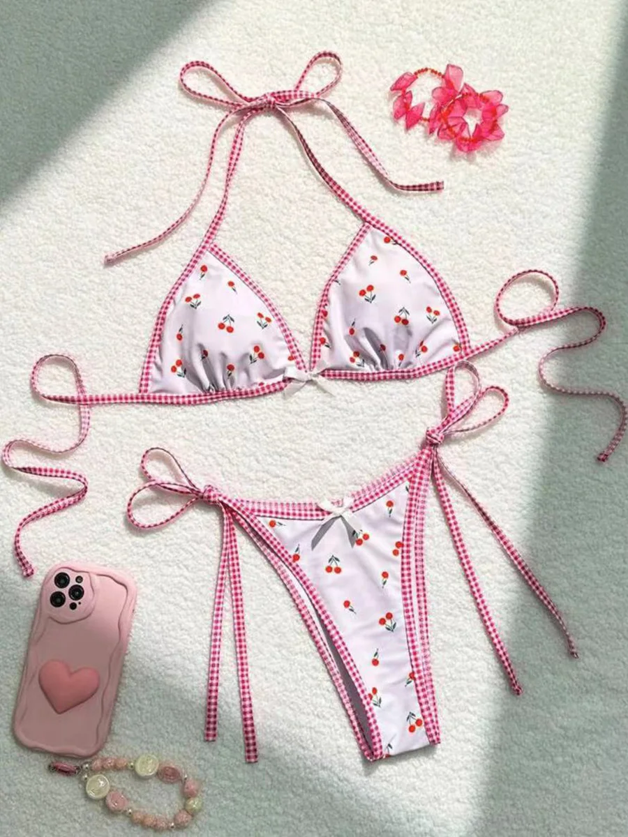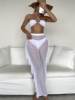 Plain Criss Cross Halter Bikini Set With Ruffle Pants Bandeau Swimsuit Women 2025 White Swimwear Female Bathing Suit Black