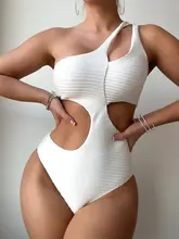 Pleated Cut Out Asymmetric One Shoulder One Piece Swimsuit Women Swimwear Female High Leg Cut Bather Bathing Suit Swim Beachwear