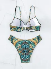 Print Underwired Bra Cup Brazilian Bikini Women Swimwear Female Swimsuit Two-pieces Bikini Set Push Up Bather Bathing Suit Swim
