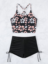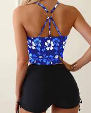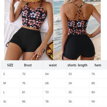 Printed Flower Tankini Set Girl Swimwear Adjustable Strap Vest Bra Female Flower Shorts Bikini Drawstring Women Beach Set