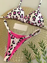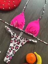Printed Halter Wrinkled Bikinis Mini Micro Thong Bikini Female Swimsuit Women Swimwear Two-pieces Bikini Set Bathing Suit Swim