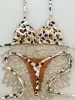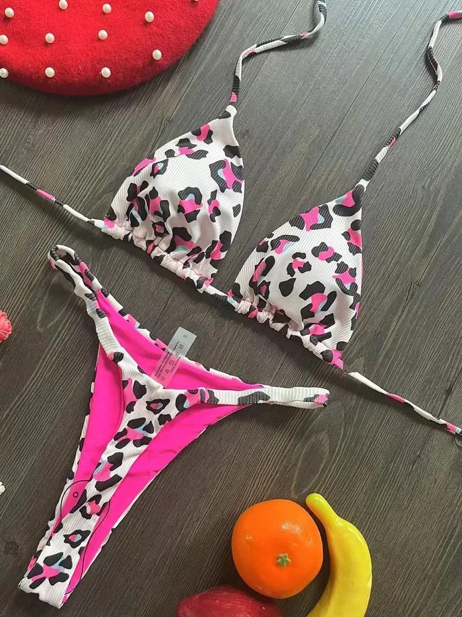 Printed Halter Wrinkled Bikinis Mini Micro Thong Bikini Female Swimsuit Women Swimwear Two-pieces Bikini Set Bathing Suit Swim