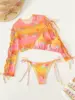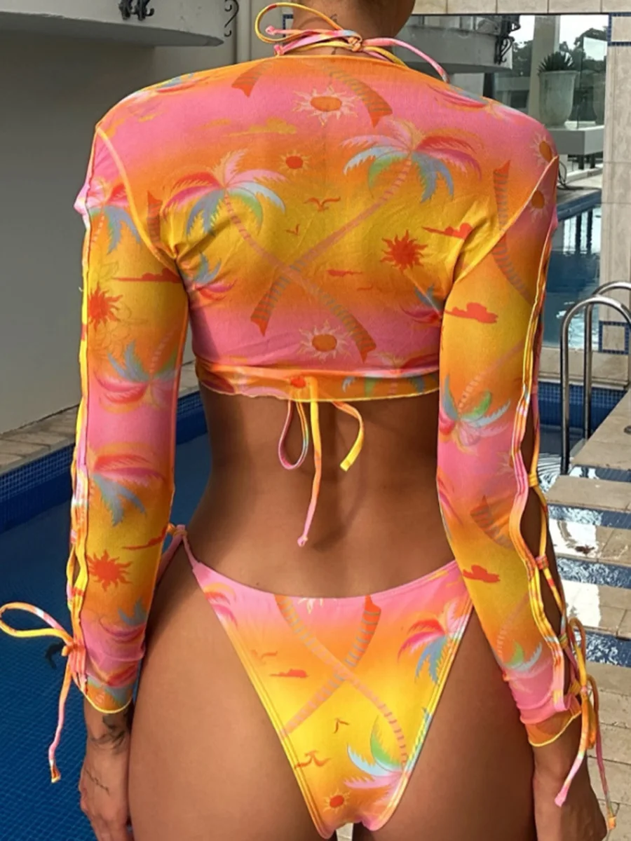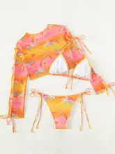 Printed Long Sleeve Bikini Women Swimwear Female Swimsuit Three-pieces Bikini Set Mini Micro Bather Bathing Suit Swim Beachwear