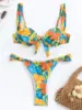 Printed Mini Thong V-bar Underwired Bikini Female Swimsuit Women Swimwear Two-pieces Bikini Set High Cut Bathing Suit Swim Lady