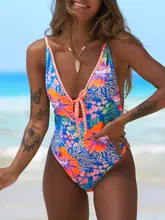 Printed V Neck Backless Monokini Female Swimwear One Piece Swimsuit Women 2025 High Cut Bathing Suit Swim Beach Wear Lady