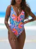 Printed V Neck Backless Monokini Female Swimwear One Piece Swimsuit Women 2025 High Cut Bathing Suit Swim Beach Wear Lady