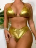 PU Faux Leather Scrunch Butt Bikini Female Swimsuit Women Swimwear Two-pieces Bikini set Bather Bathing Suit Swim Beachwear