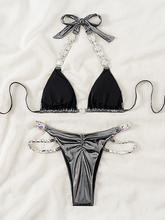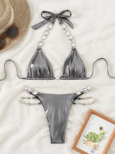 PU Leather Rhinestone Diamond Bikini Women Swimwear Female Swimsuit Two-pieces Bikini Set Brazilian Bathing Suit Swim Beachwear