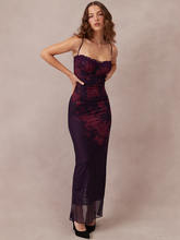 Purple Print Long Fishtail Dress For Women Robe 2025 Spaghetti Strap Sleeveless Backless Ruched Maxi Dress