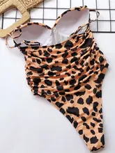 Push Up Bra Cup Leopard Scrunched Women Bandeau Swimwear One Piece Swimsuit Female Monokini High Cut Bathing Suit Swim Bodysuit