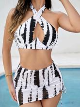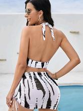 Push Up Thong Bikini 2025 Women Halter Swimwear Female 3 Pieces Swimsuit With Skirt Beach Wear Printed Bathing Suit Summer