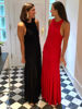 Red Sleeveless Knit Dress For Women Hollow Out O Neck Pleated Maxi Dress Ladies Solid Beach Party Long Dress