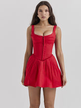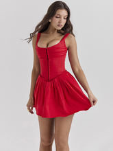 Red Sleeveless Mini Dress Women Square Collar Backless Corset Dress Femme A-line Club Party Dress Elegant