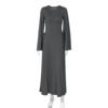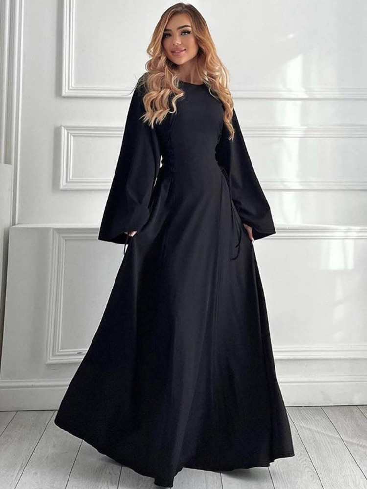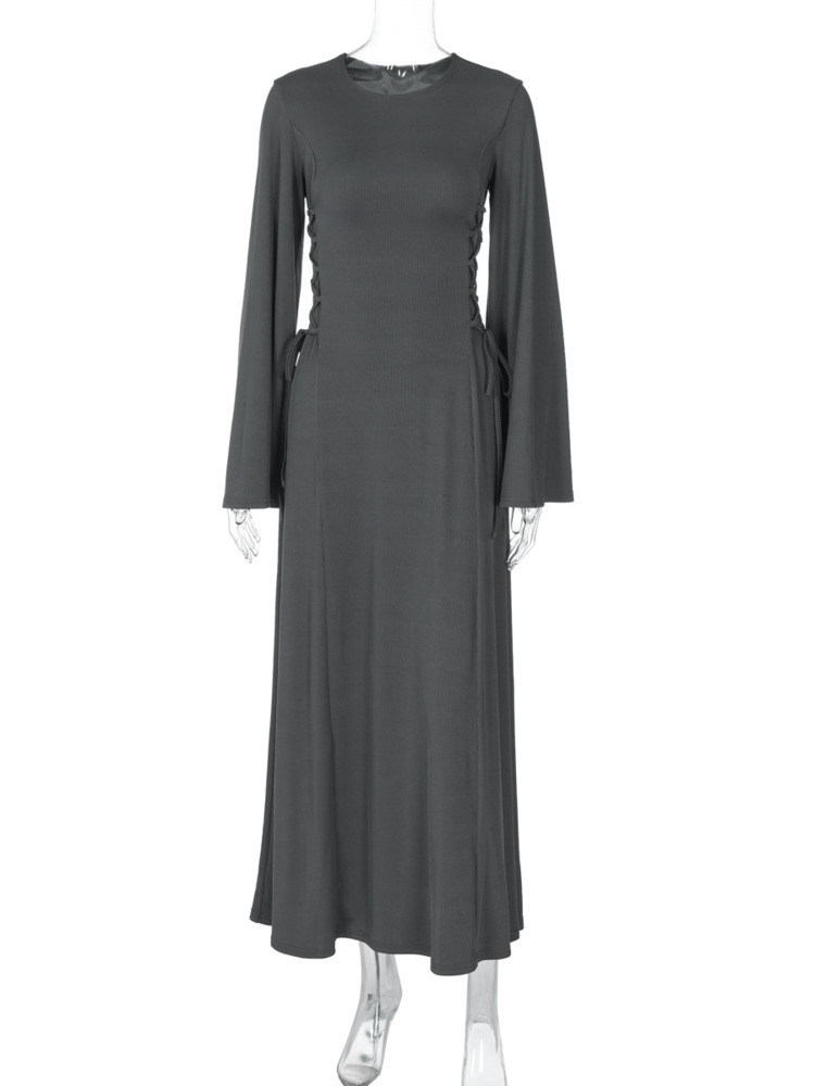 Ribbed Bandage Maxi Dress For Women Solid Lace-up O Neck Long Sleeve High Waist Elegant Long Dress Fashion
