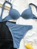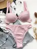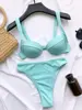 Ribbed Bra Cup High Waist Bikini Women Swimsuit Female Swimwear Two Pieces Bikini Set Push Up Bather Bathing Suit Swim Lady