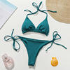 Ribbed Halter Micro Thong Bikini Female Swimsuit Women Swimwear Two-pieces Bikini Set Mini String Bather Bathing Suit Swim