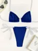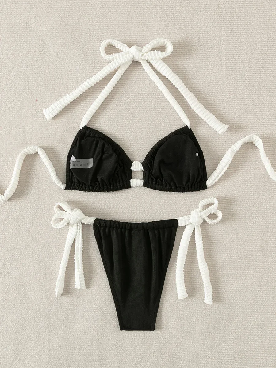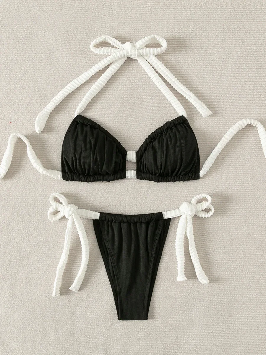 Ribbed Halter Strappy Hollow Out Bikini Women Swimwear Female Swimsuit Two-pieces Bikini Set High Cut Bather Bathing Suit Swim