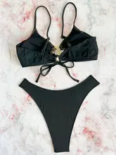 Ribbed Splicing Leopard Bikini Women Swimsuit Female Swimwear Two-pieces Bikini Set Metal Chains Bathing Suit Swim Beach Wear