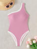 Ribbed Splicing One Shoulder Female Swimwear One Piece Swimsuit Women Monokini High Cut Bather Bathing Suit Swim Lady Beachwear