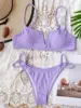 Ribbed Underwired V-Bar Bikini 2025 Women Swimsuit Female Swimwear Two Pieces Bikini Set High Cut Bathing Suit Swim Lady