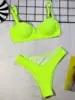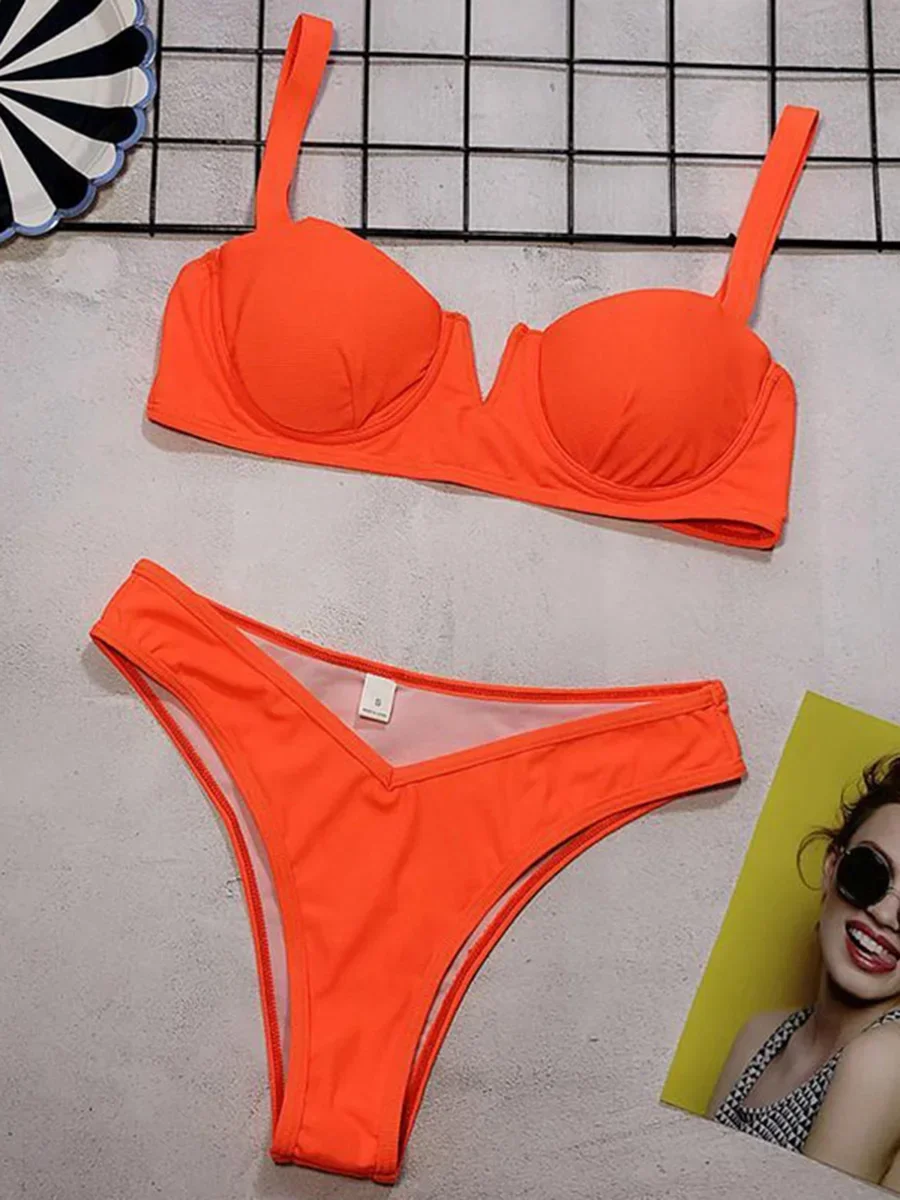 Ribbed Underwired V-bar Bikini Women Swimsuit Female Swimwear Two-pieces Bikini Set High Cut Bathing Suit Swim Beach Wear